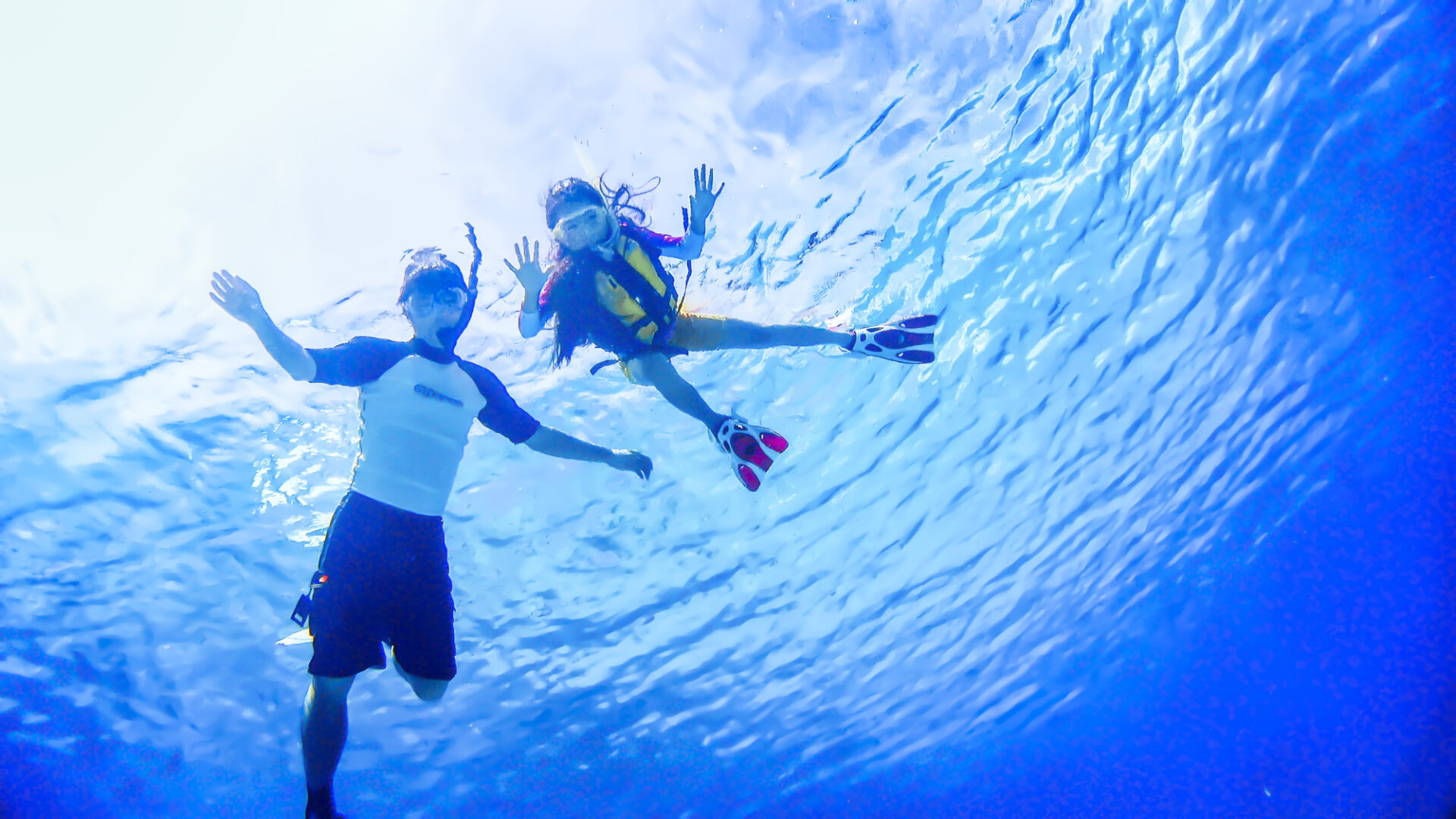 クリアカヤック体験と水中スクーター体験のセットプランです。水中スクーターなら体力の消耗が少なく、泳いで行くには遠い場所へも簡単に到着でき、ダイビングをもっと楽しめます。お子様や初心者の方でも安心です。